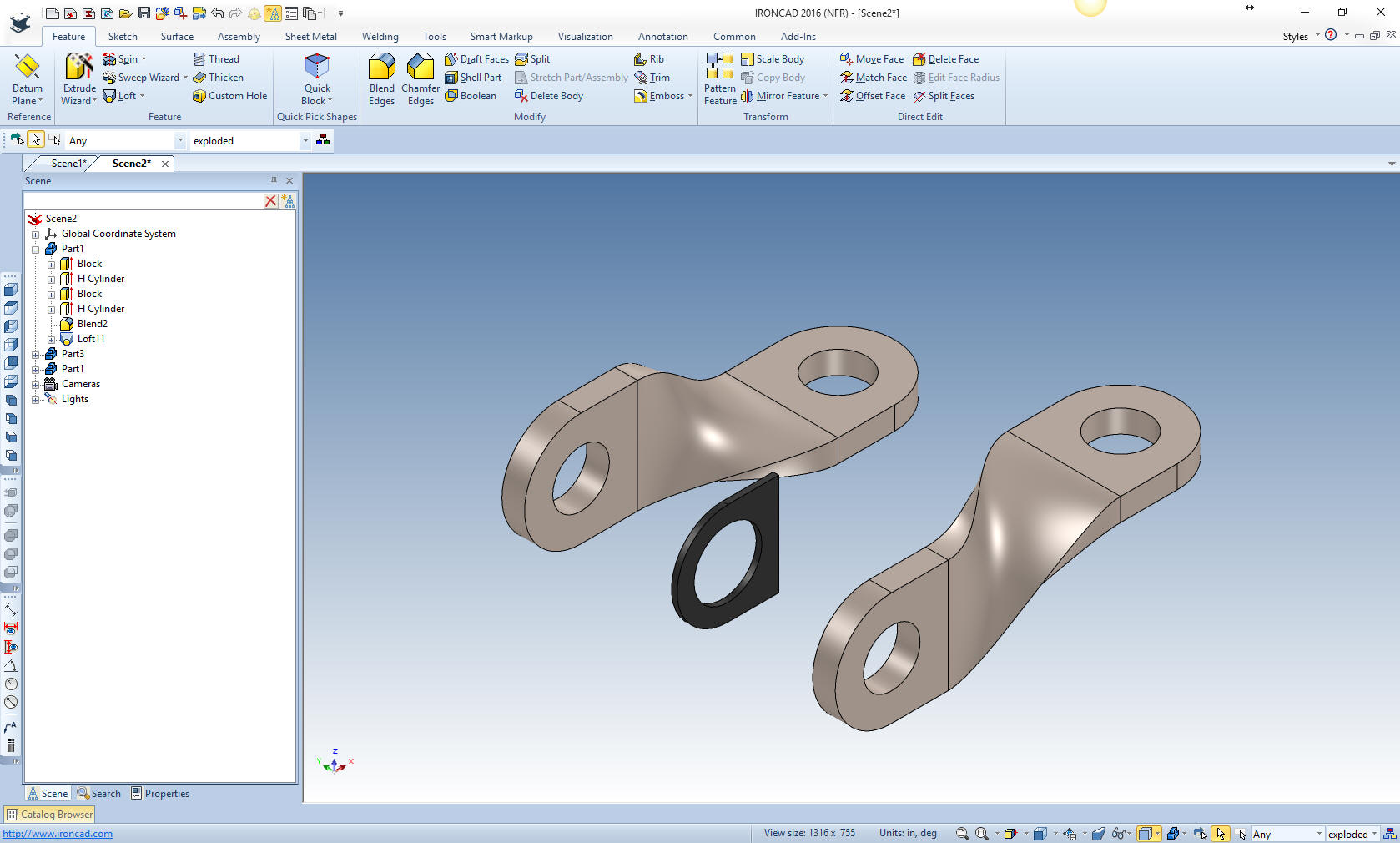 drop design paradigm. I saw the following video challenges on linkedin and thought I would give it a try on IronCAD. I actually did it before I watched the video, so I did it a bit differently. This will give you an idea how different and flexible IronCAD is compared to the conventional Pro/e clone and to the not so conventional Fusion 360. To see these same lessons in ZW3D: ZW3D vs Solidworks These following exercises started out to show the benefits of IronCAD over Solidworks, but quickly turned into a study of modeling techniques. Take a look at all of them they will open your eyes to a much different and more productive way of modeling. It really has more to do with modeling technique than it has to do with the 3D CAD systems. I have found that I do 3D modeling as compared to the conventional 2D sketching. IRONCAD vs Solidworks Lesson One ![]() IRONCAD vs Solidworks Lesson Two ![]() IRONCAD vs Solidworks Lesson Three ![]() IRONCAD vs Solidworks Lesson Four ![]() IRONCAD vs Solidworks Lesson Five ![]() IRONCAD vs Solidworks Lesson Six ![]() IRONCAD vs Solidworks Lesson Seven ![]() IRONCAD vs Solidworks Lesson Eight ![]() IronCAD vs Solidworks Lesson Nine ![]() IronCAD vs Solidworks Lesson Ten ![]() IRONCAD vs Solidworks Lesson Eleven ![]() IronCAD vs Solidworks Lesson Twelve ![]() IronCAD vs Solidworks Thirteen ![]() IronCAD vs Solidworks Lesson Fourteen ![]() IronCAD vs Solidworks Lesson Fifteen ![]() IronCAD vs Solidworks Lesson Sixteen ![]() IronCAD vs Solidworks Lesson Seventeen ![]() IronCAD vs Solidworks Lesson Eighteen IIronCAD vs Solidworks Lesson Nineteen IIf you would like to try IronCAD, please download for a 30 day evaluation. Give me a call if you have any questions. I can set up a skype or go to meeting to show this part or answer any of your questions on the operation of IronCAD. It truly is the very best conceptual 3D CAD system.