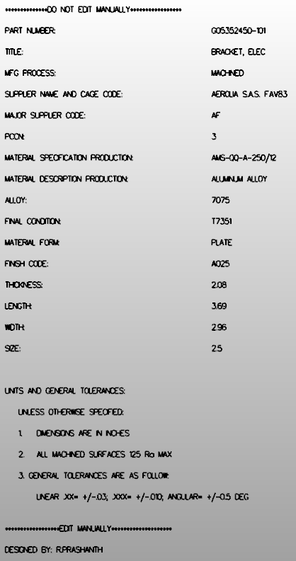 We load the first .catproduct file! ZW3D brings up the Catia 5 import dialog box. We select all components. ![]() Here is our loaded part auto-scaled. Notice the 3 tiny dots in the corner. There are three of the assemblies in airplane position. ![]() Here they are zoomed in. ![]() This view includes the mating part. I don't know who set up this file or how it got out of engineering. ![]() They also included this pin. ![]() With more than a bit of investigation I found that this was the part we were looking for. ![]() I had to jump through a few more hoops and I finally got to a point where I could put it on a 2D sheet and detail it. I was a bit of a learning curve with ZW3D and layers. I haven't played with layers since the CADKEY days. Here is the part isolated. I hope the other parts are the same. I used this one because it was tied to the horrible dimensioning and GD&T. There are no materials, finish, treatment, finish, etc included. ![]() Here is the 2D sheet. For you suppliers that have to talk to other systems, ZW3D puts all of this information is in a single file. Think that through, Catia 5 delivers nine files and ZW3D puts them all, including the 2D sheet, in a single file. Those of you suffering with Solidworks take note. ZW3D is a much better program to work with single parts and especially assemblies. For more information on ZW3D or to download a fully function 30 day evaluation copy ![]() I know you PLM/MBE gurus will never ask the question. Where is the authorization for this PMI. Only the file name identifies the part with a number, not even a name. As I talked to the fellow that sent the email above he said the company was sending screen shots of the annotation of the PMI. I chuckled and told an associate, Paul Van der Ree and surprisingly he had the same experience. Here is a screen shot of a Bombardier PMI. You cannot blame engineering. There are no standards and each group just does what they want. This PMI is compared to an AID (Associated Information Document) in this article. PMI vs AID ![]() Here are the notes: The information here is quite bizarre for any engineering documentation specialist. Where most of this would be on a single drawing you can see what they have to define in notes? Notice the reference to the nutplate rivets. I wonder where they get installed. In the past this would have been inseparable part on a single drawing. ![]() Here is another spec sheet. Notice no where on the PMI is the company mentioned. ![]() No authorization. No reference to another document. Now let's take a look at an old drawing title block. How can documentation go from a single document that completely defines the part and includes all of authorizations and revisions to the PMIs that are referenced here? ![]()