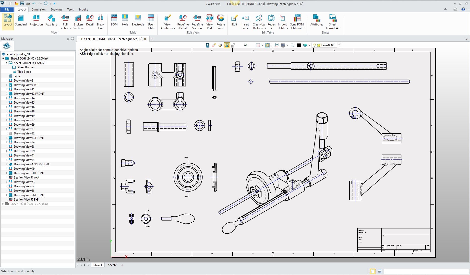 Can you imagine a large manufacturing company like Boeing? No PLM or PDM system could handle this amount of documentation effectively. ZW3D with its Multi-Object environment did this in one file. But what if we did these in separate files instead of the Multi-Object environment, you still reduced the file count by 10! How convenient is it to have the AID (drawing) in the same file? It is worth changing CAD systems! Even if you use PMI (which is included in ZW3D) you have added documentation available to support the part or assembly. Actually, that is why the PMI was created to have one design file. Sadly, it is by far the worst engineering document with virtually no standards! The Integrated AID (Drawing)