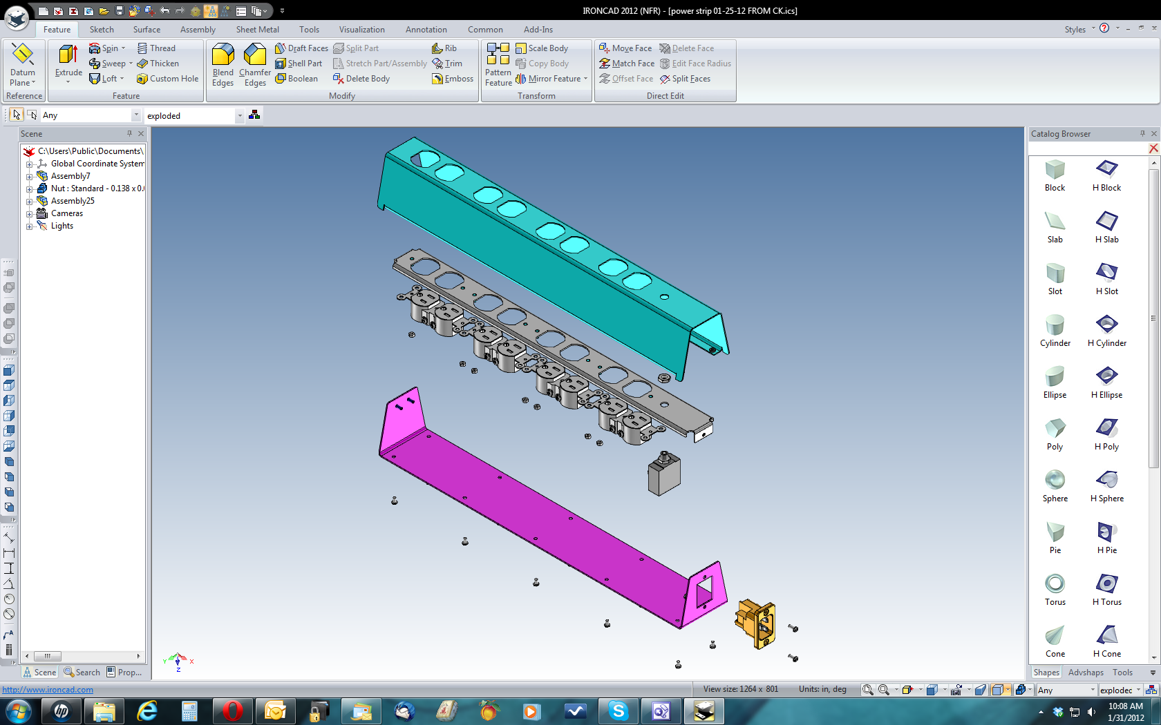 Above you can see the assembly of one of the configurations of the Power Strip. This was a metal version. You can see that it is an exploded view. This is a special view configuration not affecting the original locations of the parts.