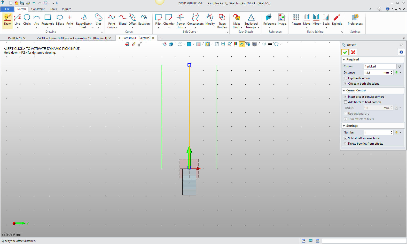 top fillets. Notice that ZW3D turns off the sketch