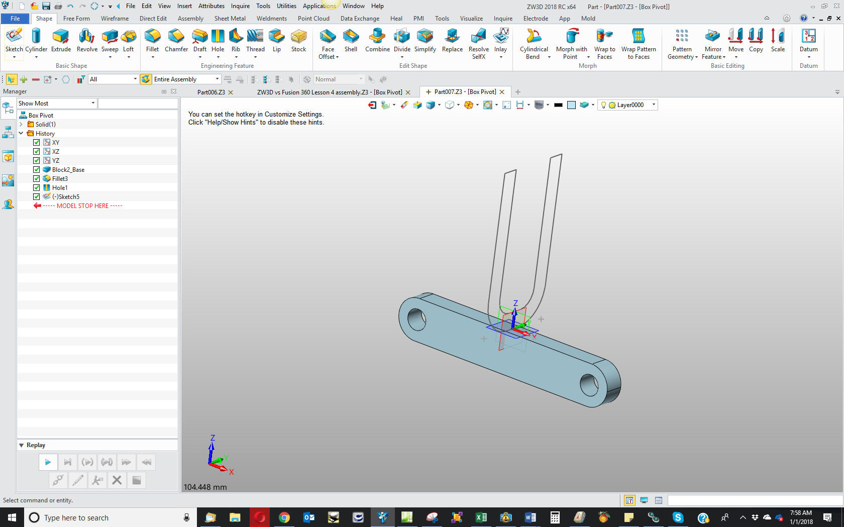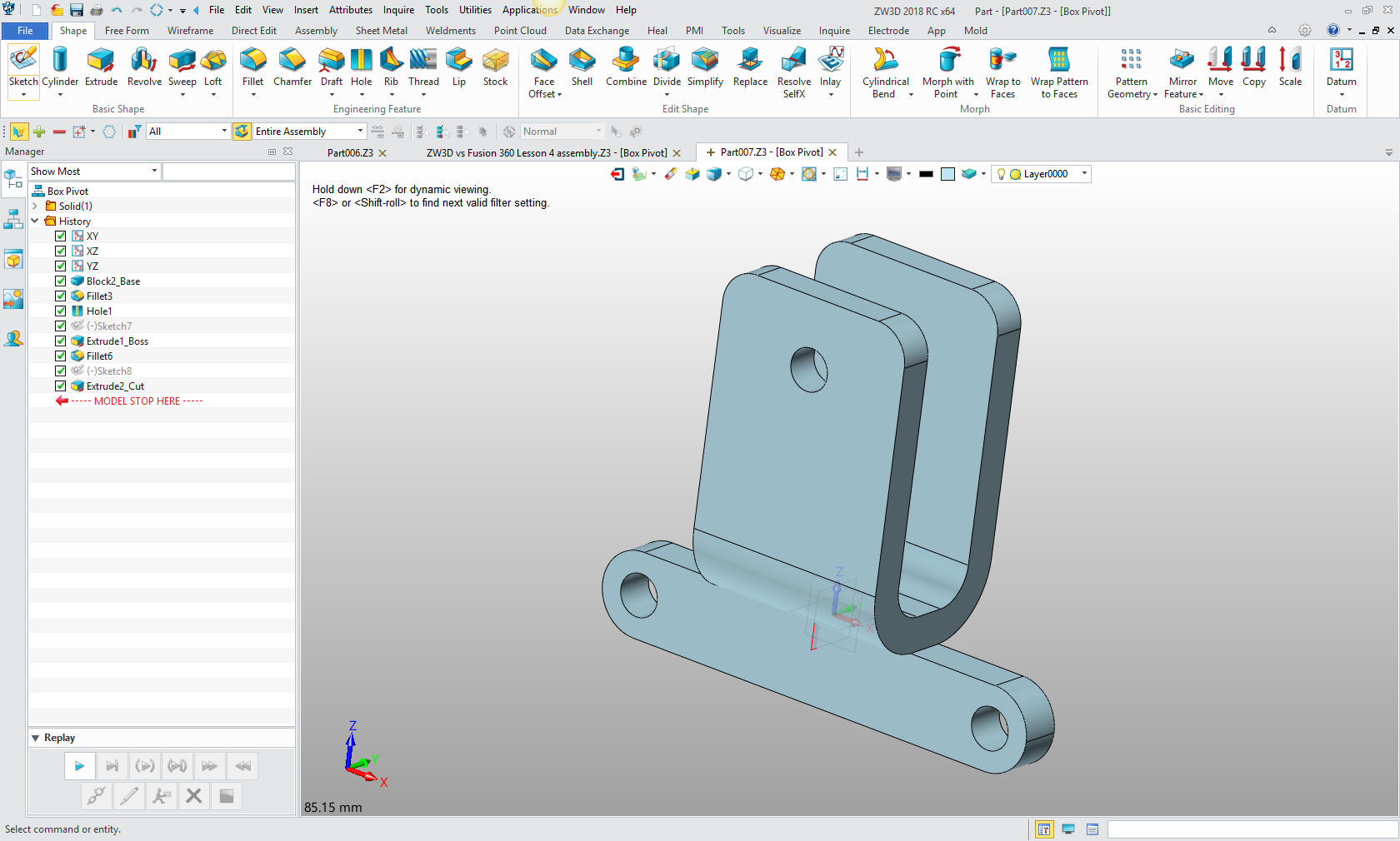 of 2D/3D wireframe, surfacing and Boolean solids. I replaced it