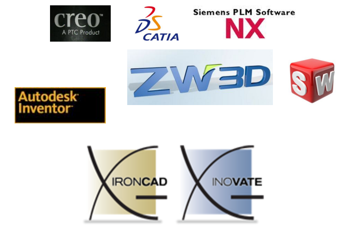Imports Creo (Pro/e), NX, Solid Edge, Solidworks and Inventor